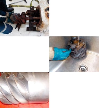 En el sector PEMEX refinación en Poza Rica, Ver. Se desarma un compresor para su mantenimiento correctivo y se hace la limpieza mecánica (Cardeo) de las aspas para el retiro del oxido.